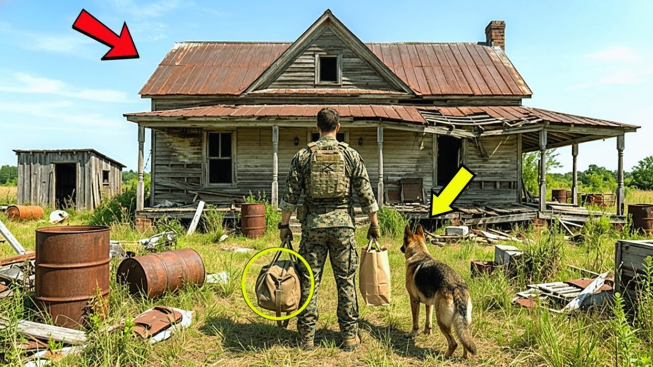 El animal recorría la habitación, nariz baja, cola rígida. Olfateó las tablas del piso, las paredes, luego corrió afuera ladrando suavemente cerca del viejo granero. “Tranquilo amigo”, murmuró el marine cansado. “Aquí no hay nada.” Pero el perro no escuchó. Algo en ese terreno había captado su atención. algo enterrado. La luz de la mañana se filtró por las ventanas rotas, pálida y silenciosa.