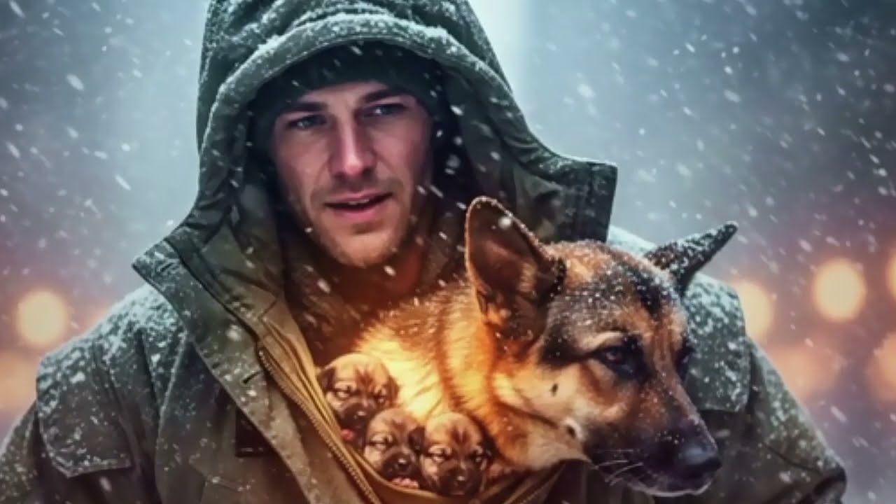 Apartó la nieve esperando encontrar una manta abandonada o basura. Al principio pensó que era solo una jaula oxidada, medio enterrada en la nieve, olvidada como si fuera deshecho. Pero entonces se movió. Adentro había una perra pastor alemán retirada del servicio y sus cachorros recién nacidos acurrucados juntos, respiraciones débiles, ojos suplicando ayuda.