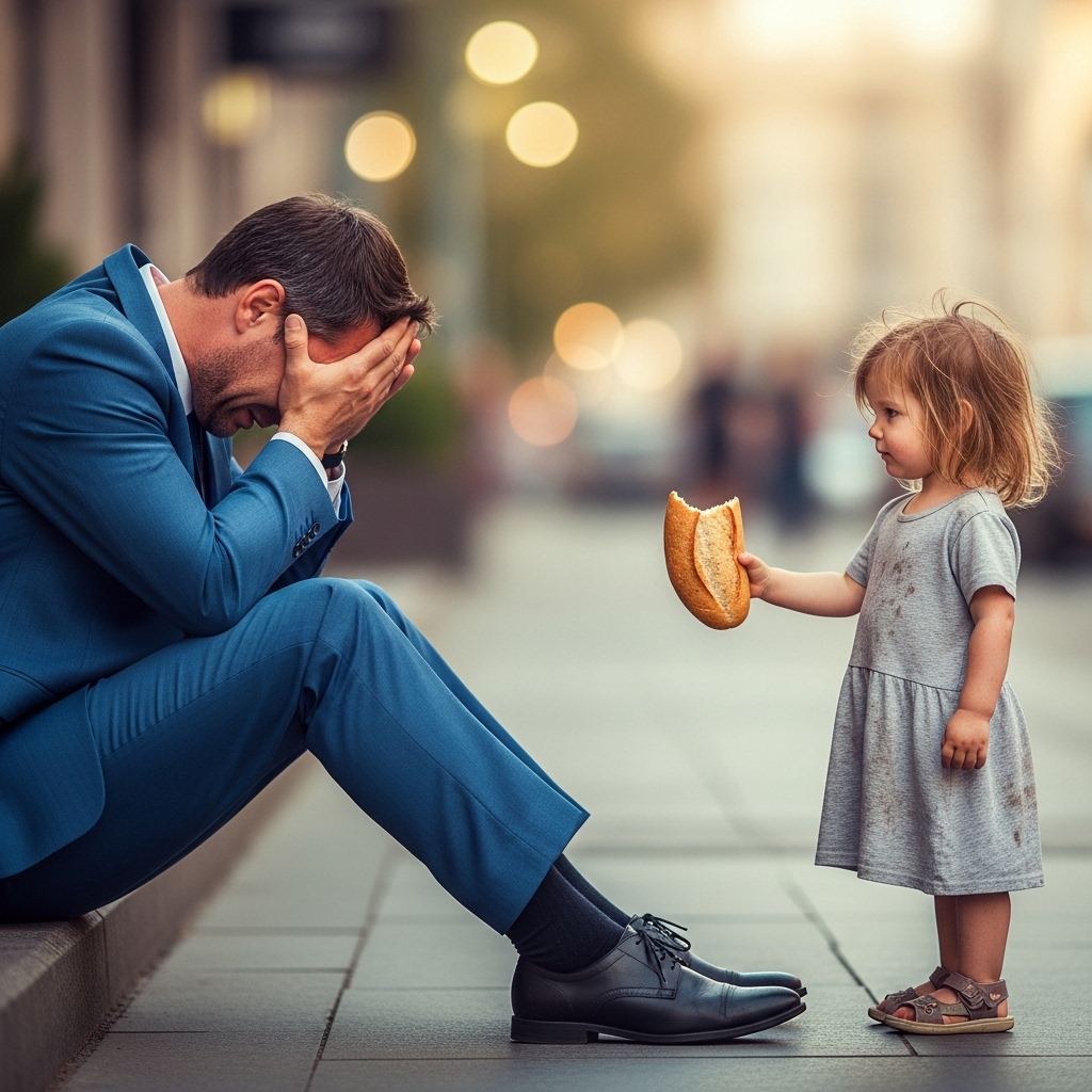 Sí, había llorado de hambre. No de pan, sino de amor. Y el destino, en forma de una niña con un pedazo de pan partido en dos, le había enseñado que a veces la forma más valiente de empezar de nuevo es la más pequeña: acercarte a un desconocido, mirarlo a los ojos, y ofrecerle lo único que tienes… aunque sea apenas un pedazo de pan bajo la lluvia.