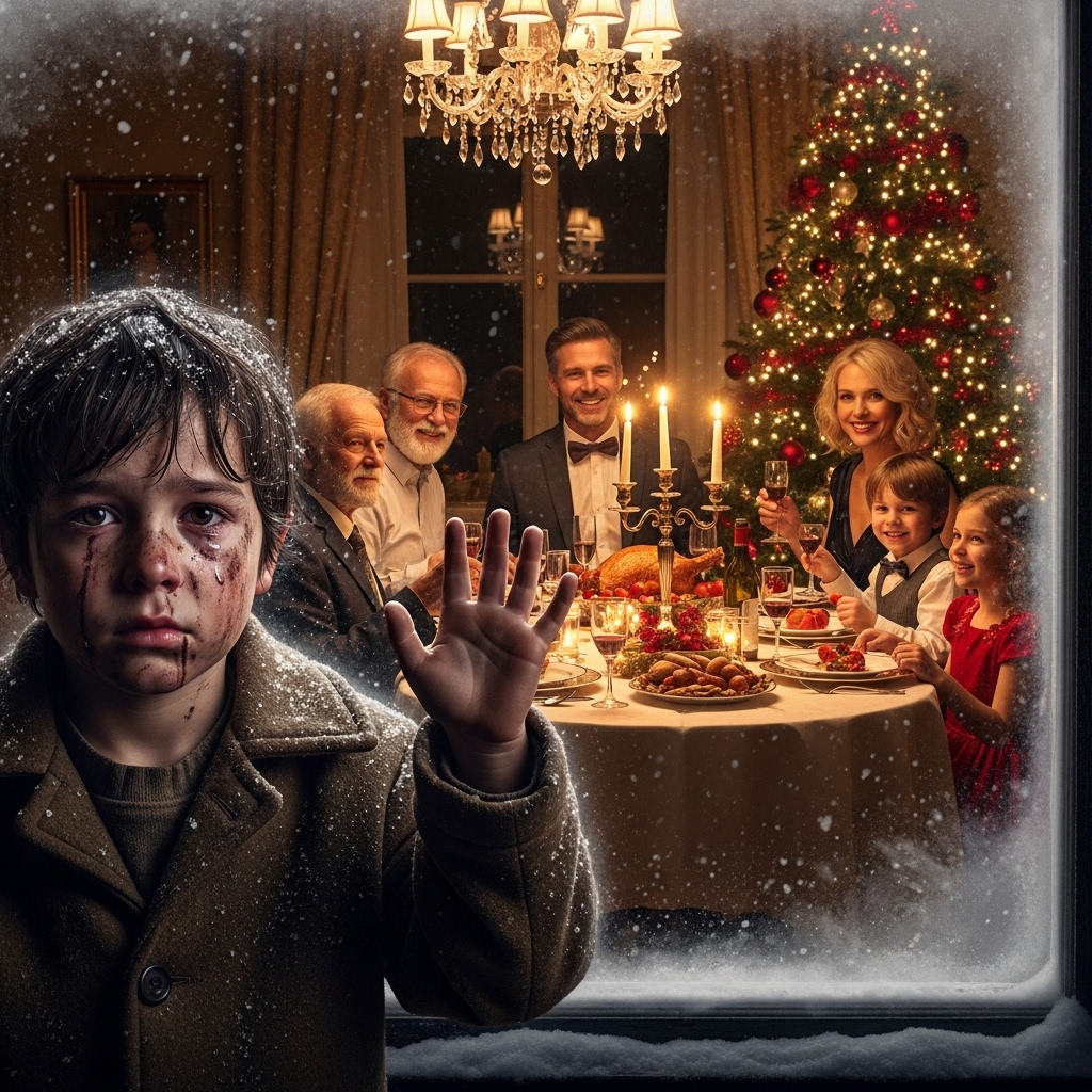 Buscando aire, Roberto giró la mirada hacia el ventanal. Quiso ver su jardín, la nieve, el reflejo de su éxito. Y entonces lo vio: una sombra pequeña pegada a la reja. Un niño. Un niño sucio, temblando, mirando hacia adentro.