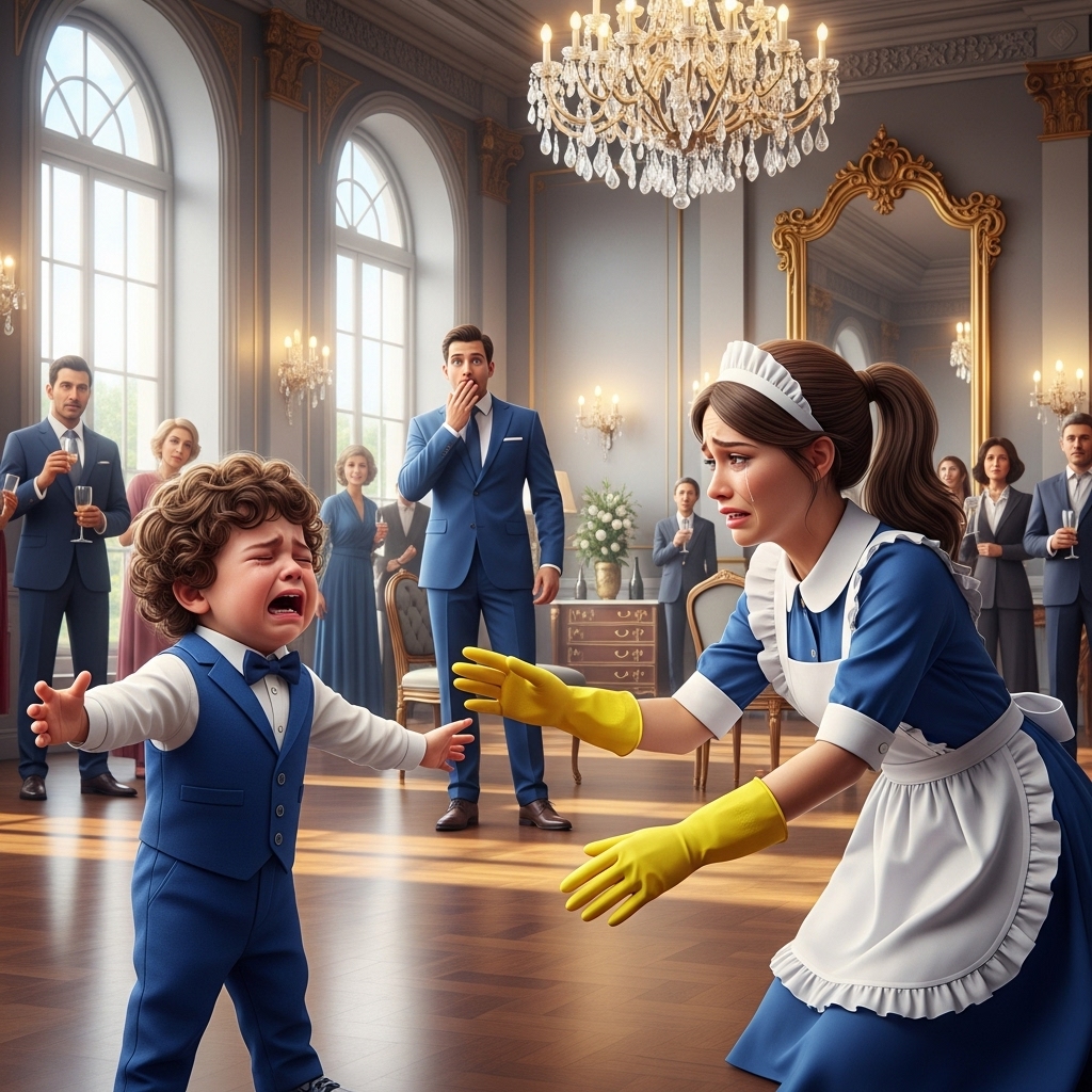 De repente, el llanto del pequeño Mateo, el hijo de Santiago, rompió la atmósfera controlada. El niño, que llevaba meses sin hablar desde la muerte de su madre, lloraba desconsolado en brazos de su abuela, Doña Carmen. Nadie comprendía el motivo, hasta que Mateo, con los ojos llenos de desesperación, buscó algo entre los extraños que lo rodeaban. Y fue entonces, en un acto que nadie esperaba, que sus ojos se detuvieron en Ariana. Con una fuerza sorprendente para su edad, Mateo se soltó de los brazos de su abuela y, extendiendo los brazos, gritó con voz clara y potente: “¡Mamá!” La palabra resonó en el salón como un trueno, deteniendo el tiempo y dejando a todos en shock.