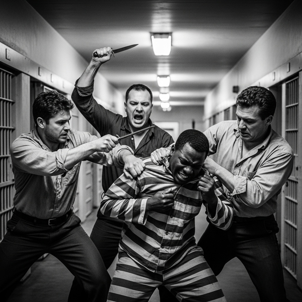 Bumpy Johnson estaba en el suelo, con la sangre extendiéndose por el hormigón como pintura derramada. Tres prisioneros italianos estaban de pie sobre él: Tony “The Blade” Márquez, Vincent Callo y Sal Romano. Todos respiraban con dificultad. Todos sostenían armas blancas improvisadas que habían afilado durante semanas en el taller de maquinaria.