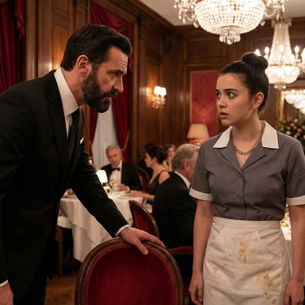 Su dedo señalaba directamente el pecho de una joven con uniforme gris, un trapo sucio en la mano. Ivet se quedó inmóvil. Sintió la sangre helarse en sus venas y, por instinto, soltó el trapo para cubrirse el cuello con ambas manos, protegiendo el medallón dorado que colgaba de él.