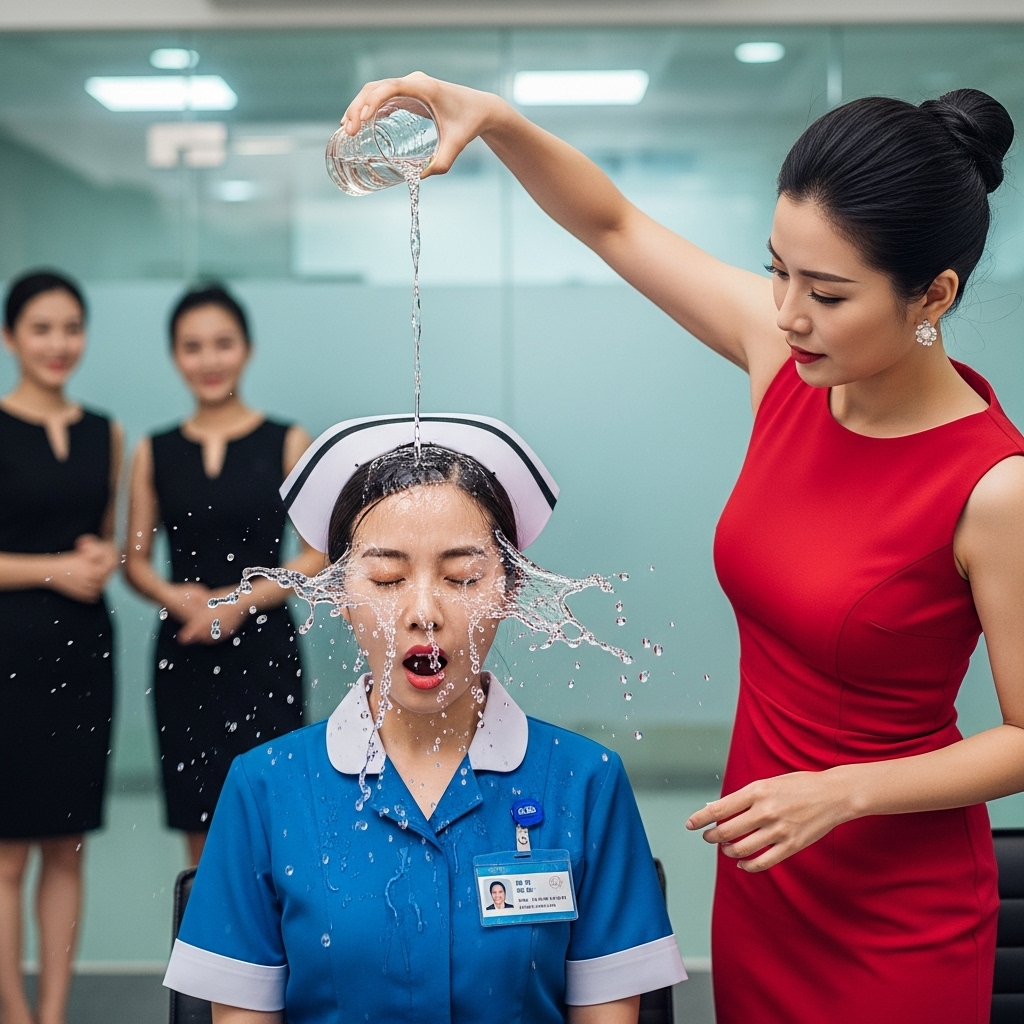 Tan pronto como Elena entró, Vanessa le arrebató el vaso de la mano, lo bebió, y luego lo arrojó con fuerza sobre ella. El agua fría empapó su uniforme y su cabello. Elena quedó completamente humillada, mientras Vanessa se reía y tomaba fotos para compartirlas en las redes sociales.