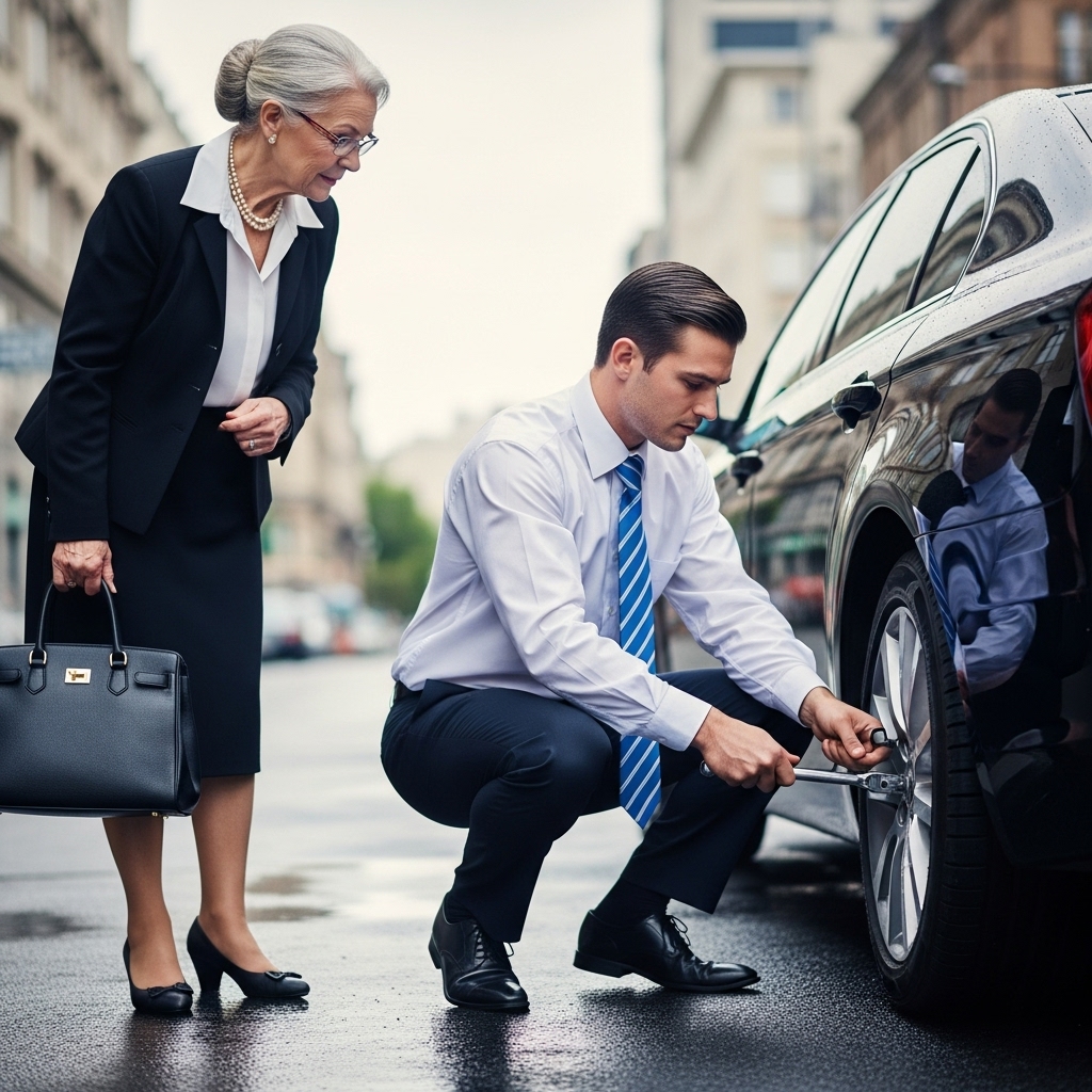 A unas cuadras del edificio donde se celebraría la entrevista, Miguel escuchó el sonido de una llanta reventando. Al voltear, vio a una mujer mayor, elegante, mirando con desesperación una llanta desinflada en su coche de lujo. El sol ya comenzaba a calentar, y el reloj le recordaba que tenía poco tiempo. Si se detenía a ayudar, perdería la oportunidad de llegar a la entrevista a tiempo. Sin embargo, algo en su interior le decía que debía hacer lo correcto.