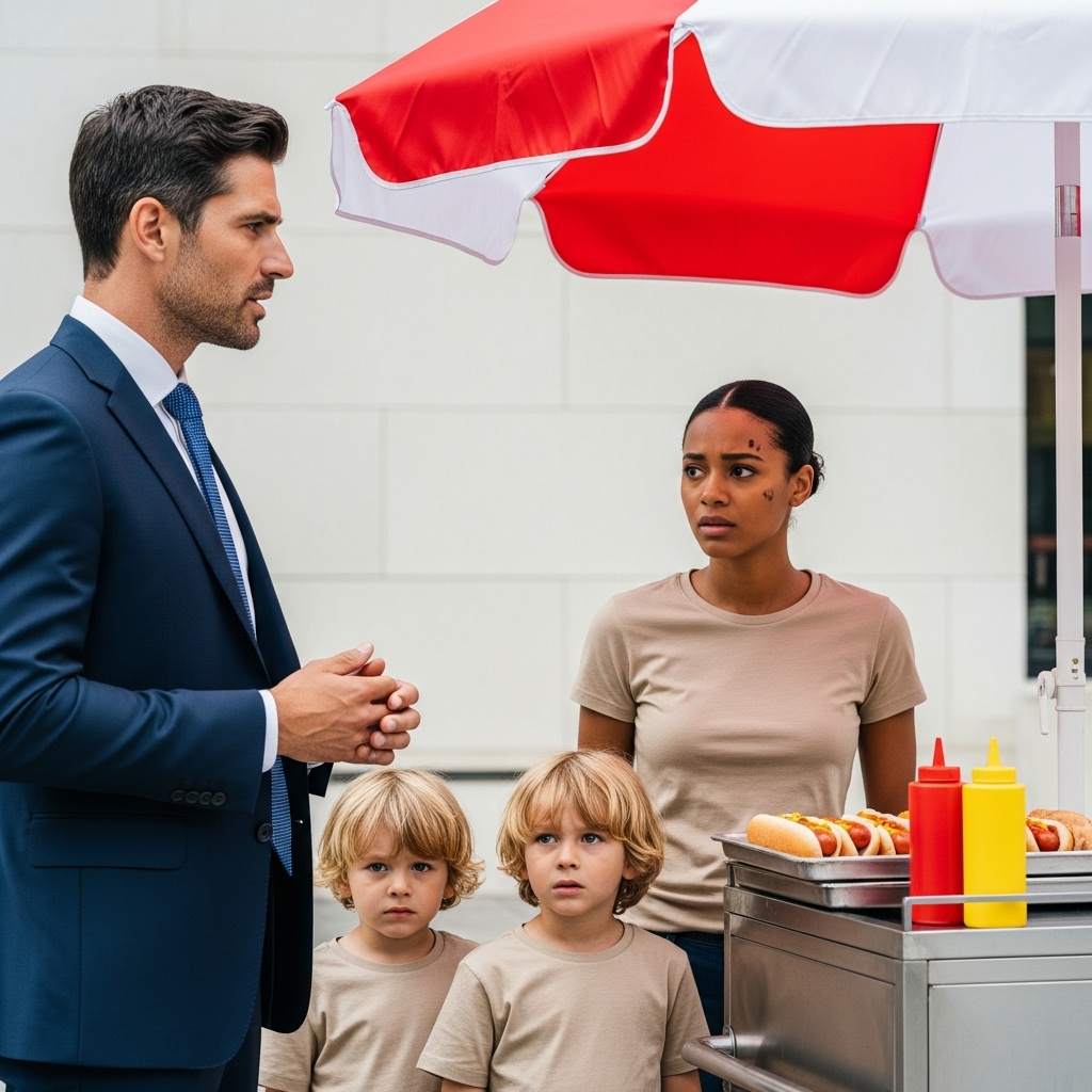 Con las manos temblorosas, salió del coche y caminó hacia el puesto. Daniela estaba de espaldas, sazonando un hot dog, como si nada hubiera cambiado. Los niños, ajenos al mundo, organizaban los sobres de salsa. Cuando uno de ellos lo miró, los dos se quedaron mirando a Javier, como si sus ojos lo reconocieran. Fue entonces cuando Daniela se giró lentamente, su rostro palideció al ver a Javier. Por un momento, el tiempo se detuvo. Los fragmentos de un pasado que ella había intentado olvidar, comenzaron a encajar.