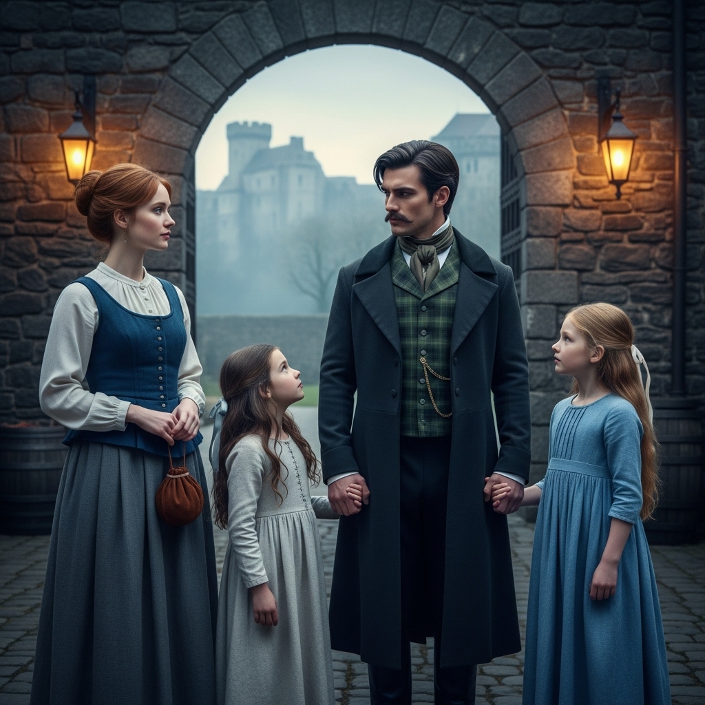 Agotada, se sentó en la orilla de una fuente en la plaza. Allí, escuchó a dos damas de sociedad murmurar sobre el Duque McGregor. “Vive encerrado en ese castillo como si fuera un mausoleo desde que murió su esposa”, decían. “Esas pobres niñas, tan pequeñas y sin madre… necesita casarse, pero es tan exigente”. Margaret levantó la vista hacia la colina donde el imponente castillo de piedra oscura dominaba el paisaje. Un castillo lleno de habitaciones, de polvo, de necesidad. ¿Qué perdía con intentarlo? Si la rechazaban, al menos habría visto de cerca el lugar donde vivían los que no conocían el hambre.