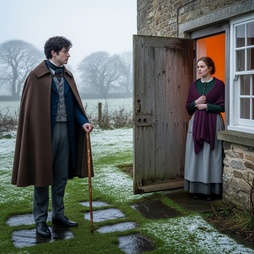 Al llegar, el viento rugió entre las colinas y la cabaña, aunque deteriorada, parecía haber sido ocupada por alguien. El conde, con su bastón en mano, caminó lentamente hacia la puerta. Al abrirla, encontró a una joven mujer, con el cabello recogido y las manos cubiertas de harina, mirándolo con calma, como si su presencia no le sorprendiera. “Buenas tardes, mi lord”, dijo sin ninguna muestra de reverencia. La sorpresa de Arthur fue mayúscula, pues la casa que había comprado, según el notario del pueblo, estaba vacía.