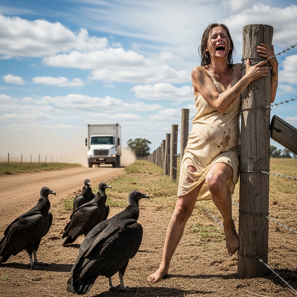 Frené con tal fuerza que el tráiler gimió y la carga se sacudió violentamente. Me orillé levantando una nube de polvo. Bajé de la cabina con el corazón martilleando en la garganta. Al acercarme, los zopilotes apenas se movieron, me miraron con esa paciencia macabra de la muerte segura. Espanté a las aves con un grito ronco y me arrodillé junto a ella.