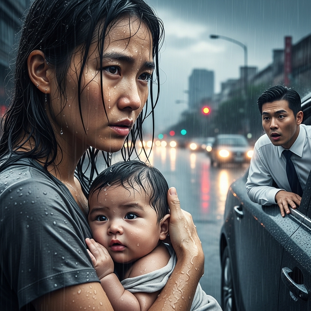 Era una mañana gris en Yakarta, de esas en las que el cielo parece haber decidido llorar todas las lágrimas que el mundo retiene. La lluvia no era violenta, pero sí implacable, una cortina constante y fría que empapaba el asfalto y difuminaba las luces de los rascacielos. En medio de ese caos urbano, donde los coches de lujo y las motocicletas peleaban por un centímetro de carretera, había una figura que la mayoría de la gente elegía ignorar. Siti estaba de pie en una esquina, con el agua calándole hasta los huesos. No llevaba paraguas, ni siquiera una chaqueta adecuada; solo un vestido desgastado y un pañuelo húmedo que se adhería a su piel. Pero Siti no temblaba por ella misma. Sus brazos rodeaban con una fuerza desesperada un pequeño bulto contra su pecho: su hija, Zahra.