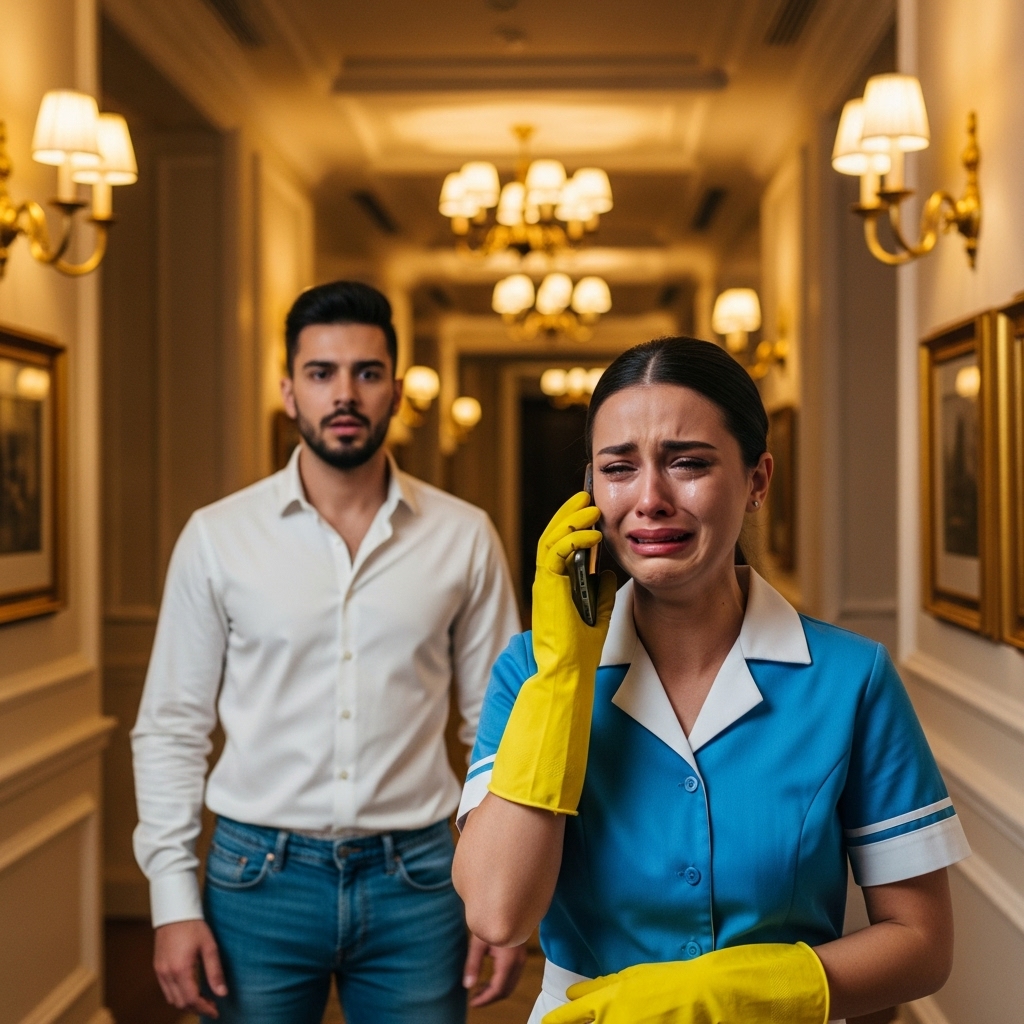 Carlos se dejó caer en el borde de la cama, sintiendo una mezcla de alivio y vergüenza. Había juzgado mal. Había proyectado sus miedos sobre una mujer honesta. Pero la calma duró poco. A través de la pared, escuchó un sonido ahogado. Salió al pasillo nuevamente. Laura estaba al final del corredor, arrinconada junto a la salida de emergencia. No estaba limpiando. Estaba hablando por teléfono, y su cuerpo se sacudía violentamente. Carlos se acercó con sigilo, impulsado ya no por la sospecha, sino por una curiosidad humana que no lograba descifrar.