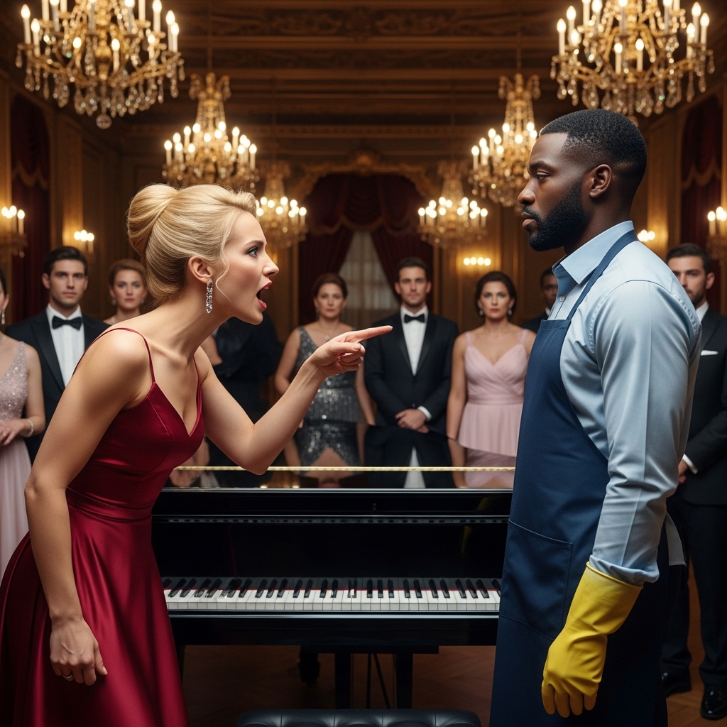 Esa noche, su tarea era mantener impoluto el gran piano de cola Steinway que dominaba el centro del salón. Era una bestia negra y brillante, un instrumento magnífico que yacía en silencio, esperando a ser despertado. Mateo lo limpiaba con una reverencia casi religiosa. Al pasar el paño sobre la tapa armónica, sintió una descarga eléctrica recorrerle la espina dorsal. Por un segundo, solo un segundo, se permitió imaginar que no estaba limpiando, sino preparándose para un concierto. Pero la voz áspera del mayordomo lo devolvió a la realidad con una orden seca. Mateo bajó la cabeza, tragó su orgullo y siguió frotando, sin saber que el destino, caprichoso y repentino, estaba a punto de cambiar la partitura de su vida para siempre; una tormenta silenciosa se estaba gestando en el centro del salón, y él sería el pararrayos.