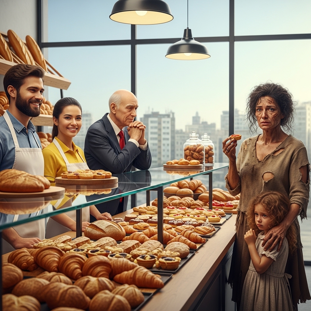 —Disculpen… ¿tienen algún pastel caducado? ¿Algo que vayan a tirar al final del día? —Su voz se quebró, pero continuó—. Mi hija no ha probado un dulce en meses. Por favor.