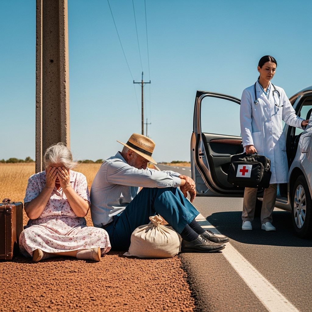 Sentí como si me hubieran dado un puñetazo en el estómago. Tres horas bajo este sol. Sin agua. Sin sombra. Abandonados como si fueran trastos viejos que estorban en una mudanza. Miré a mi alrededor; no había nada en kilómetros. Dejar a dos personas de más de ochenta años aquí no era un descuido, era una sentencia de muerte.