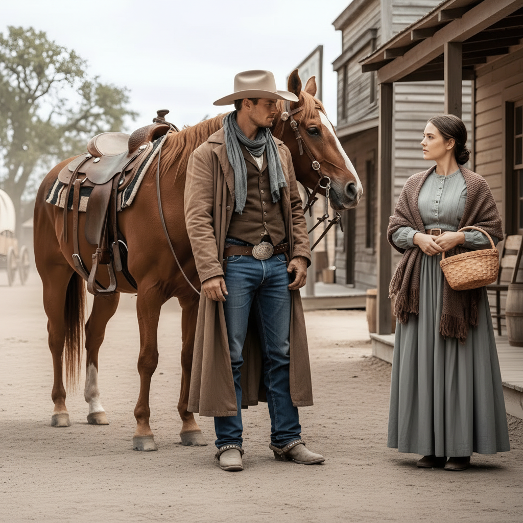 A unos pasos, cerca del establo de alquiler, un hombre apoyado en un poste la observaba sin disimulo. Sombrero calado, brazos cruzados sobre un abrigo que había visto caminos largos pero seguía limpio. Botas gastadas, postura quieta, como si ninguna tormenta pudiera empujarlo. No era la mirada sucia de los curiosos ni la de los que disfrutan la desgracia ajena. Era otra cosa: una atención seria, casi dolorosa.