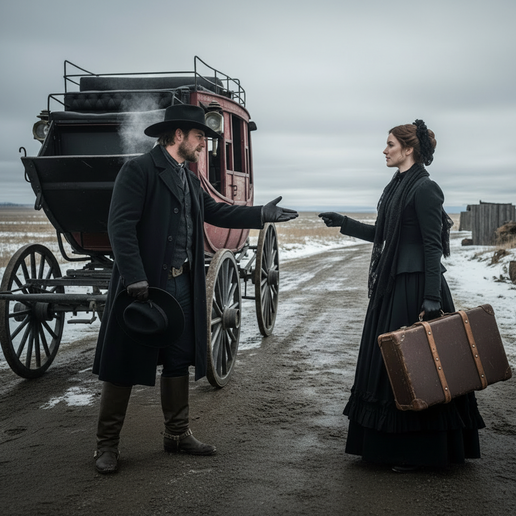 El carruaje apareció por fin, levantando una nube de polvo helado sobre el camino duro. Las ruedas chirriaron al detenerse frente al porche y la nieve saltó en pequeños estallidos alrededor de las botas de Samuel. El cochero, un hombre de sonrisa torcida y ojos que disfrutaban del chisme ajeno, se inclinaba hacia él.