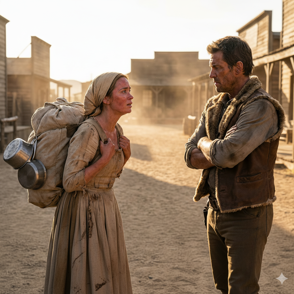 Llegó a un asentamiento al caer la tarde, pensando que quizás allí alguien vería a una viuda, no a un problema. Pero las puertas se cerraron antes de que pudiera terminar una frase. Algunas mujeres miraban su vestido roto con sospecha; algunos hombres negaban con mule cabeza con mule misma rapidez con que uno espanta una mosca. Una anciana se persignó al verla, como si Sarah trajera mala suerte pegada a la piel. Nadie quería una extraña, y menos una extraña desesperada.