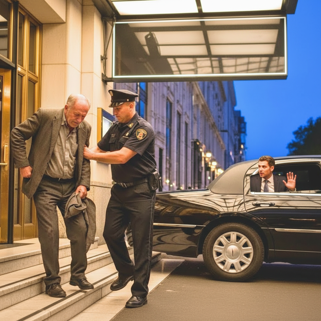 Intentó dar un paso adelante, aferrándose al borde del cristal. El guardia lo empujó suavemente, pero con firmeza, como se aparta una bolsa en el pasillo. Elías trastabilló sobre los escalones mojados y sintió que la humillación le encendía las mejillas con un calor más cruel que la lluvia.