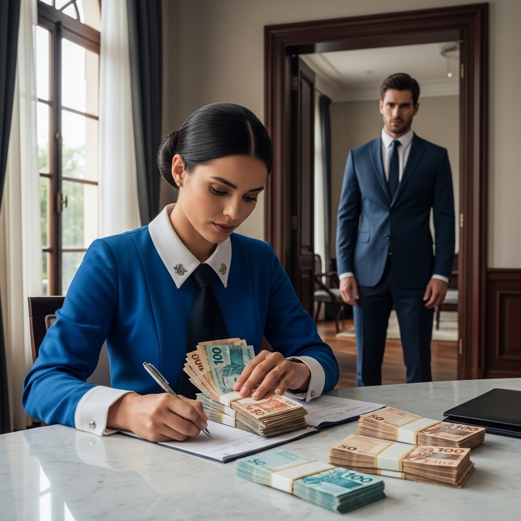 Julia extendió las manos hacia los billetes, sí, pero no para esconderlos en sus bolsillos. Con una delicadeza casi reverencial, comenzó a ordenarlos. Los alisó, los agrupó por valor, formando pilas perfectas en el centro del mueble. Sacó un pequeño bloc de notas de su delantal, escribió algo y lo colocó sobre el dinero.