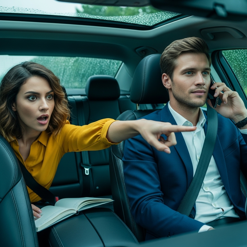 Ana Sofía ni siquiera verificó la placa. Vio un auto negro, elegante y brillante acercarse a la orilla y, sin pensarlo dos veces, abrió la puerta trasera y se lanzó al interior, huyendo del agua que amenazaba con arruinar su peinado y su traje sastre, el único decente que tenía.