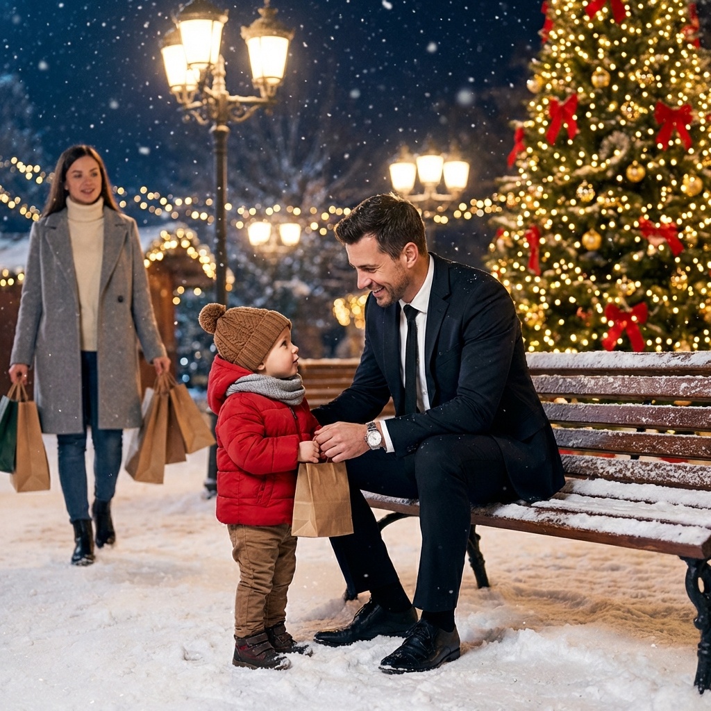 Era la nochebuena en Madrid. La ciudad vestía sus mejores galas; las luces de la Gran Vía titilaban como ríos de diamantes y el aire olía a castañas asadas y churros calientes. La gente corría con bolsas de regalo, risas y esa prisa alegre de quien sabe que alguien le espera en casa. Pero en un banco solitario del Parque del Retiro, bajo la luz mortecina de una farola y con los primeros copos de nieve cayendo sobre sus hombros, había un hombre que deseaba desaparecer.