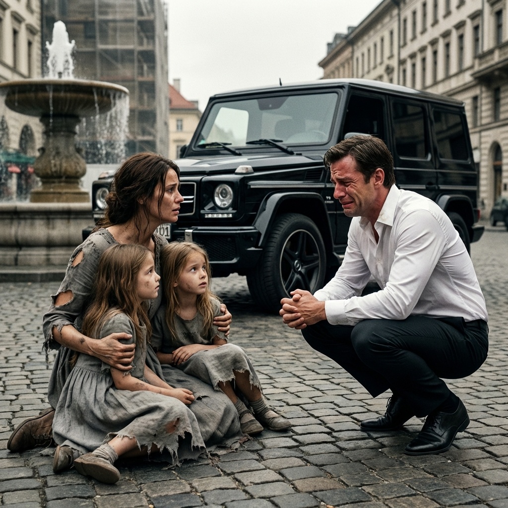 Salió a la lluvia sin paraguas, arruinando sus zapatos de cuero de mil dólares en los charcos de aceite y barro. Corrió hacia la acera. La mujer, al escuchar los pasos apresurados, se encogió instintivamente, cubriendo con su cuerpo a las dos niñas que dormían a su lado. Era el gesto de un animal herido que espera otro golpe.