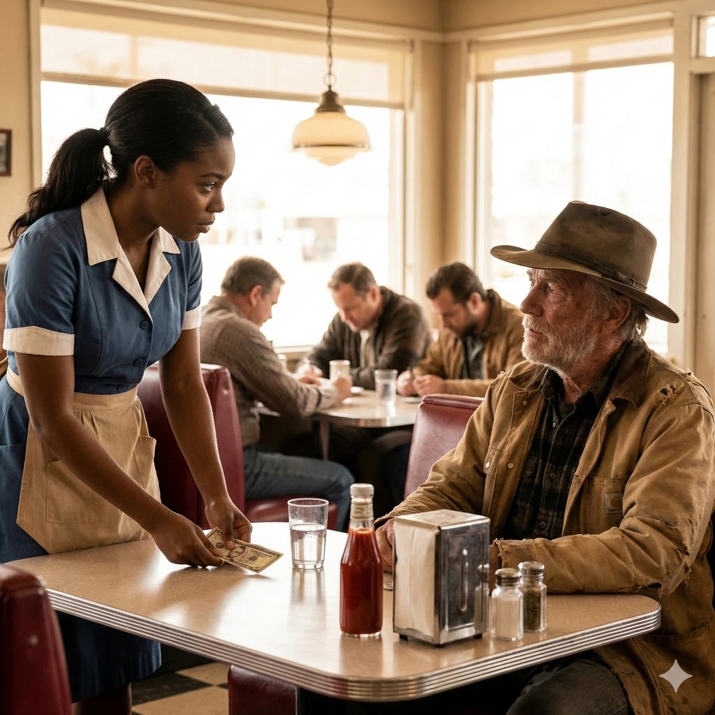 —No puedo aceptar esto, señor —dijo ella con voz firme pero dulce—. En mi mesa, el calor humano no se cobra. Guárdelo, lo necesita más que yo.
