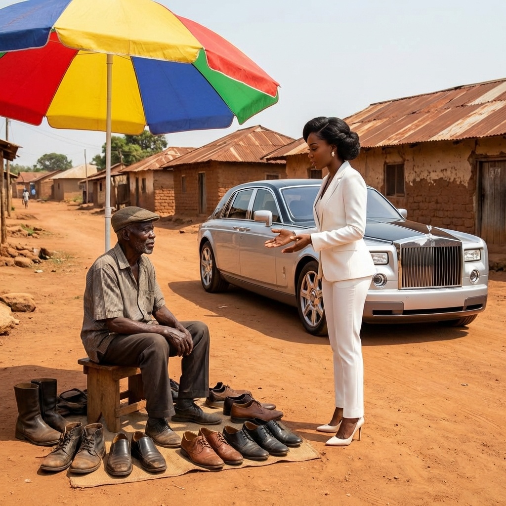 El chofer bajó y abrió la puerta trasera. De allí descendió una mujer. Era joven, hermosa, irradiando una elegancia poderosa. Vestía un traje sastre impecable y llevaba un bolso de cuero fino. Caminó hacia la zapatería con pasos firmes, resonando sus tacones en la acera.