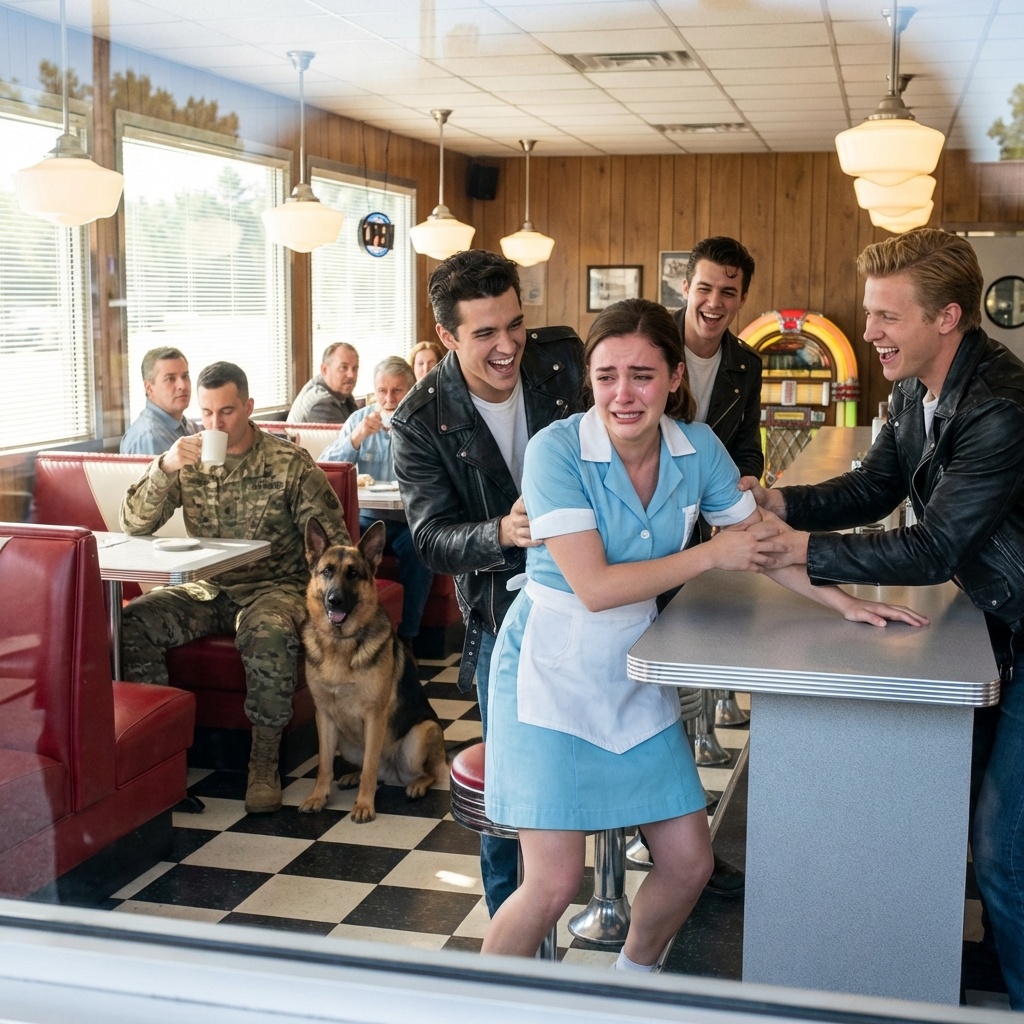 Los matones estaban acosando a una camarera, pero un SEAL de la Marina y su perro pastor alemán estaban observando y dándoles una lección.