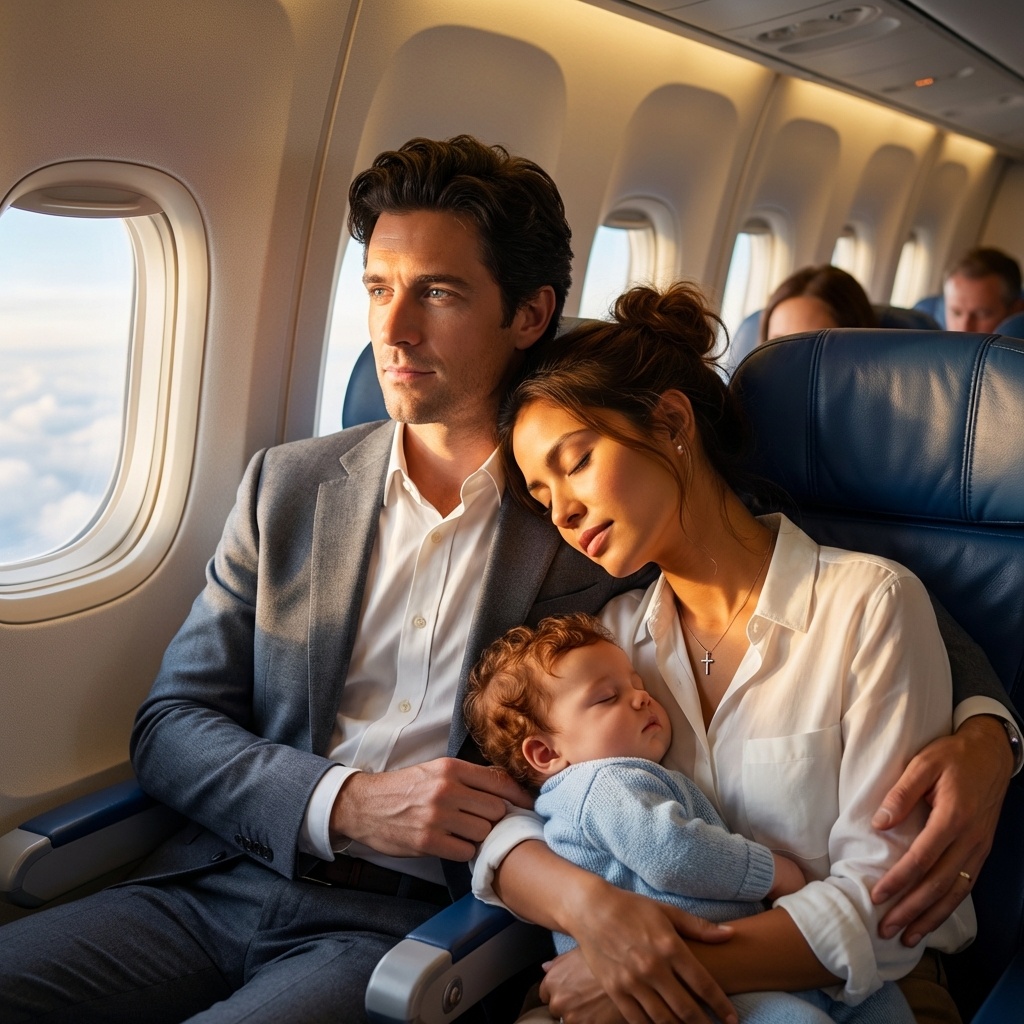 MILLONARIO EN VUELO DEJA QUE UNA MADRE POBRE DUERMA CON SU BEBÉ EN SU HOMBRO Y DESCUBRE EL AMOR