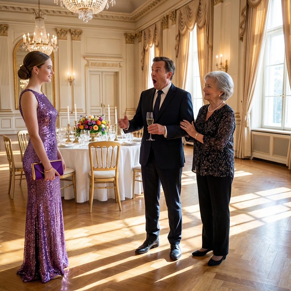 Roberto, sintiendo que su broma se desmoronaba y que el control se le escapaba de las manos, reaccionó de la única forma que sabía: con agresión defensiva. El alcohol y la vergüenza le impulsaron hacia adelante. Salió al encuentro de ella en medio de la pista de baile, con una sonrisa nerviosa que parecía una mueca. “¡Vaya, vaya!”, exclamó con una voz demasiado alta, tratando de recuperar la atención de la sala. “¡Miren a quién tenemos aquí! ¡A Cenicienta! Elena, te dije que vinieras, pero no pensé que te gastarías los ahorros de toda tu vida en alquilar un disfraz para impresionarnos. ¿A quién engañas? Aunque te vistas de seda, sigues siendo la que limpia mis inodoros”.