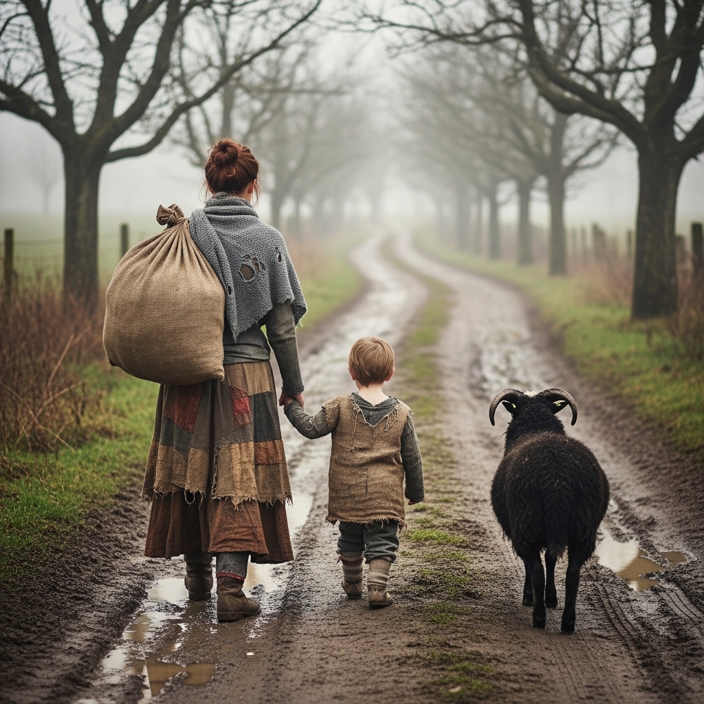Caminaron sin rumbo hasta que sus piernas fallaron, encontrando refugio en una vieja bodega tabacalera abandonada a las afueras del pueblo. El techo era un colador y el suelo de tierra estaba húmedo, pero al menos las paredes cortaban el viento helado. Esa noche, Sofía envolvió a su hijo en la lana sucia y grasosa. Era repugnante al tacto, pero el instinto de supervivencia le dijo que la lanolina natural repelería la humedad. Santi se durmió pegado al cuerpo cálido de Mora, la oveja negra, mientras Sofía vigilaba la entrada, con el estómago rugiendo de hambre y el corazón ardiendo de una sed de justicia que la mantenía despierta. Al amanecer, la realidad golpeó con más fuerza. Necesitaban comer. Sofía seleccionó los mejores mechones de la lana, se lavó la cara con agua de lluvia y marchó al mercado del pueblo con la esperanza de vender algo. Pero la maldición de los Villaseñor se extendía como una plaga. Comerciante tras comerciante, todos rechazaron su mercancía. “Es pelo de perro”, le decían con asco. “La lana negra no sirve, es de luto, da mala suerte”. Incluso su amiga Claudia le cerró la puerta en la cara por miedo a las represalias de Regina.