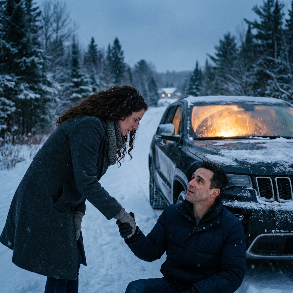 —Mi auto… se quedó atascado —dijo él, con la voz temblorosa por la hipotermia—. No tengo señal. Necesito ayuda.