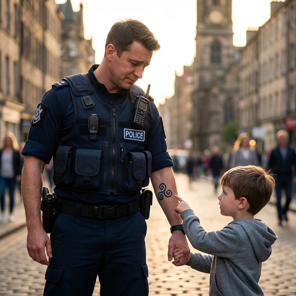 Sin pensarlo, movido por una fuerza que nacía de lo más profundo de su inocencia perdida, Thiago estiró su mano sucia y temblorosa. Sus dedos, manchados de grasa y polvo, tocaron la piel tibia del policía, justo sobre la tinta negra.