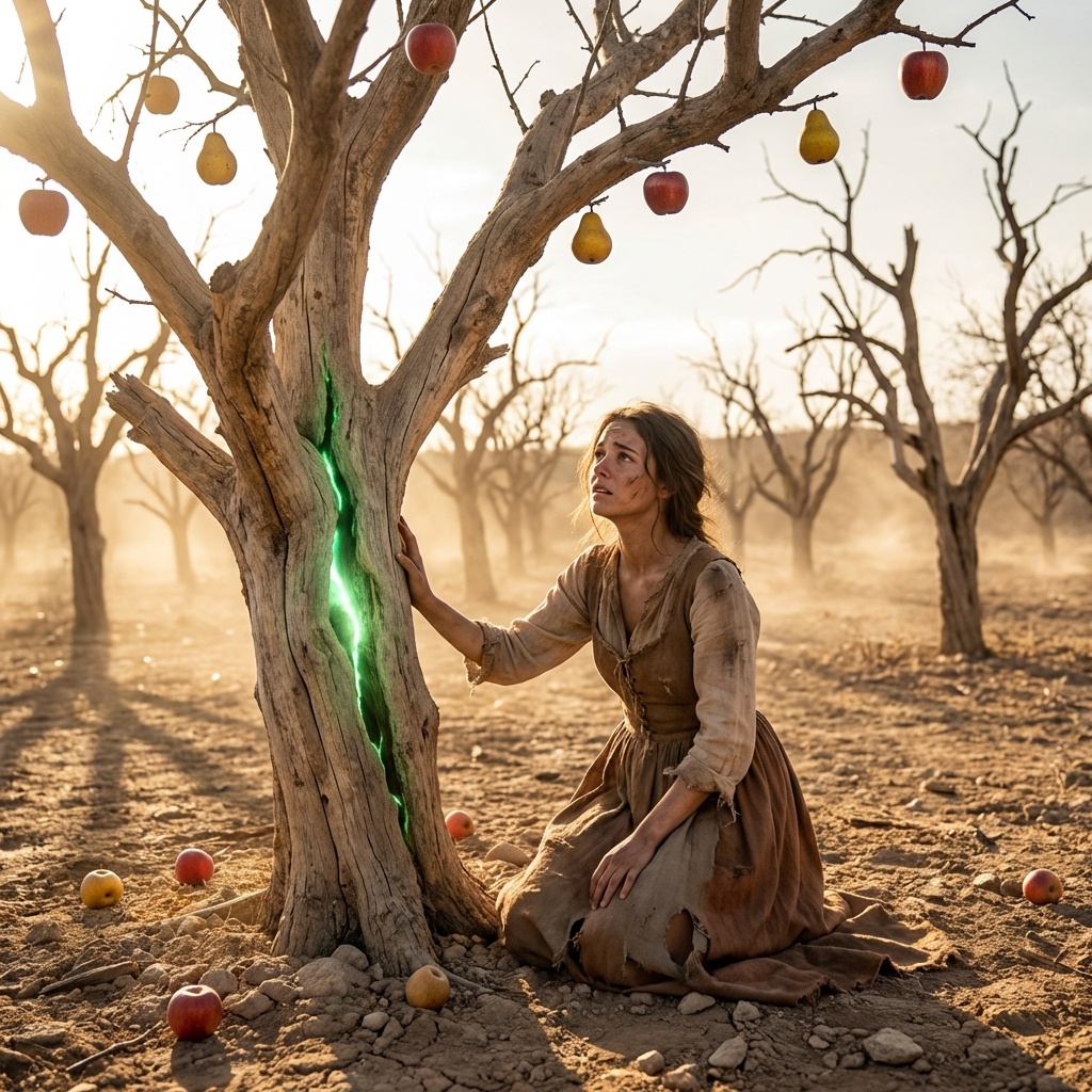 Llegó “La Gran Seca”. No fue un evento repentino, sino una asfixia lenta. El cielo se tornó de un azul metálico, sin una sola nube durante meses. El sol se convirtió en un enemigo. En el valle, el suelo, debilitado por años de químicos y sobreexplotación, colapsó. La tierra se volvió polvo estéril. Los pozos de agua de los hermanos, que habían sido sobreexplotados para llenar piscinas y regar jardines decorativos, se secaron.