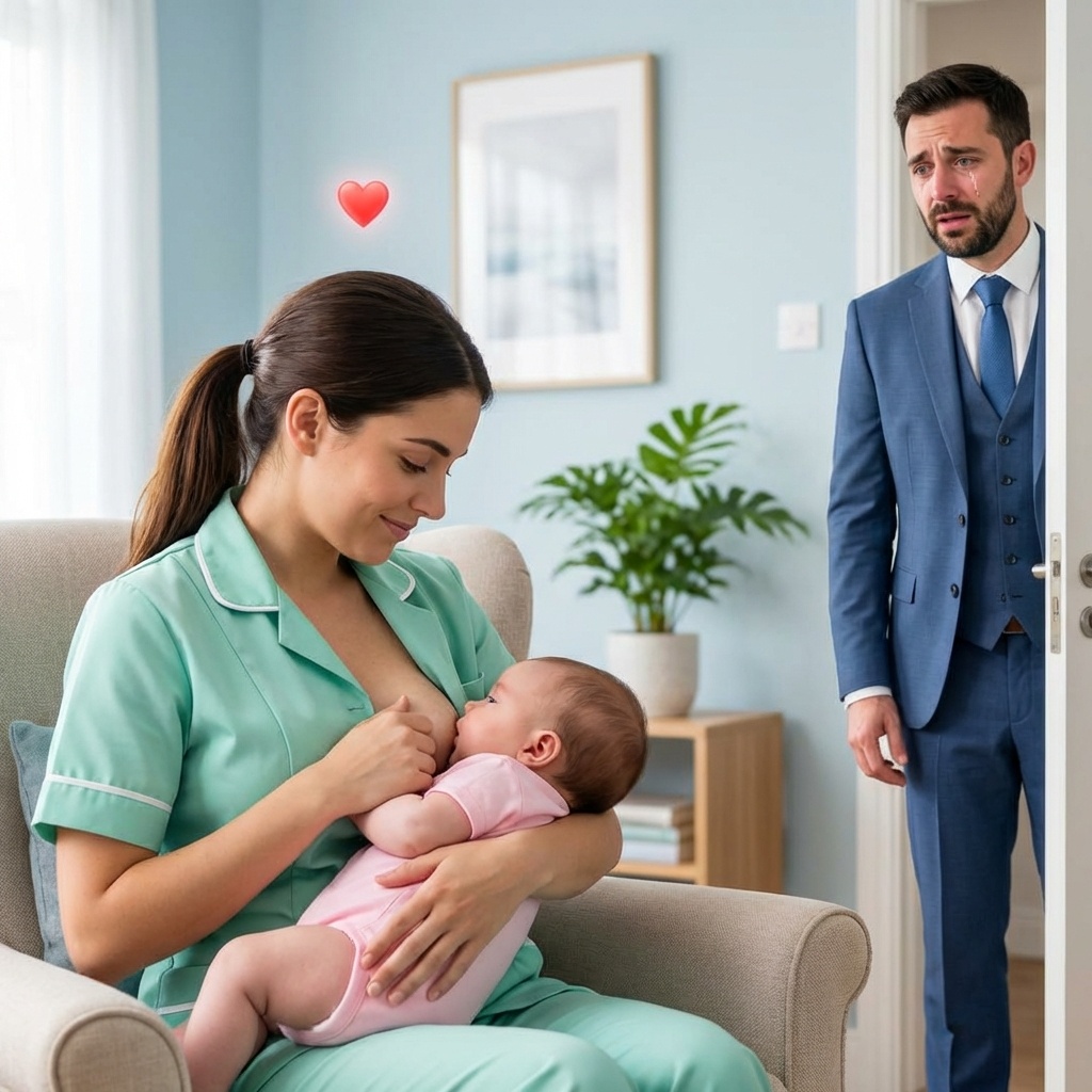 Su hija, su pequeña Valeria, la niña que no había hecho más que llorar y sufrir desde el día en que nació, estaba… en paz. Estaba dormida, con una gota de leche en la comisura de los labios, aferrada al pecho de esa mujer desconocida como si fuera su salvavidas. Y la mujer, esa niñera de ropa humilde, lo miraba con una mezcla de terror absoluto y una dignidad desafiante, cubriendo instintivamente a la bebé, pero sin apartarla.