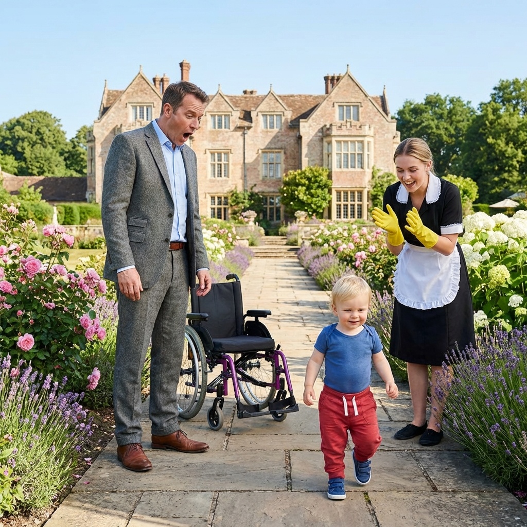 Y entonces sucedió. El niño, impulsado por una fuerza que ningún fisioterapeuta había logrado despertar, se inclinó hacia adelante. Sus músculos atrofiados temblaron, pero respondieron. Se deslizó de la silla al suelo y comenzó a arrastrarse hacia ella. No era caminar, pero era movimiento. Era voluntad. Dante sintió que las lágrimas le quemaban los ojos. Esa mujer, con su uniforme sencillo y su energía inagotable, estaba logrando lo imposible: le estaba devolviendo a su hijo las ganas de vivir.