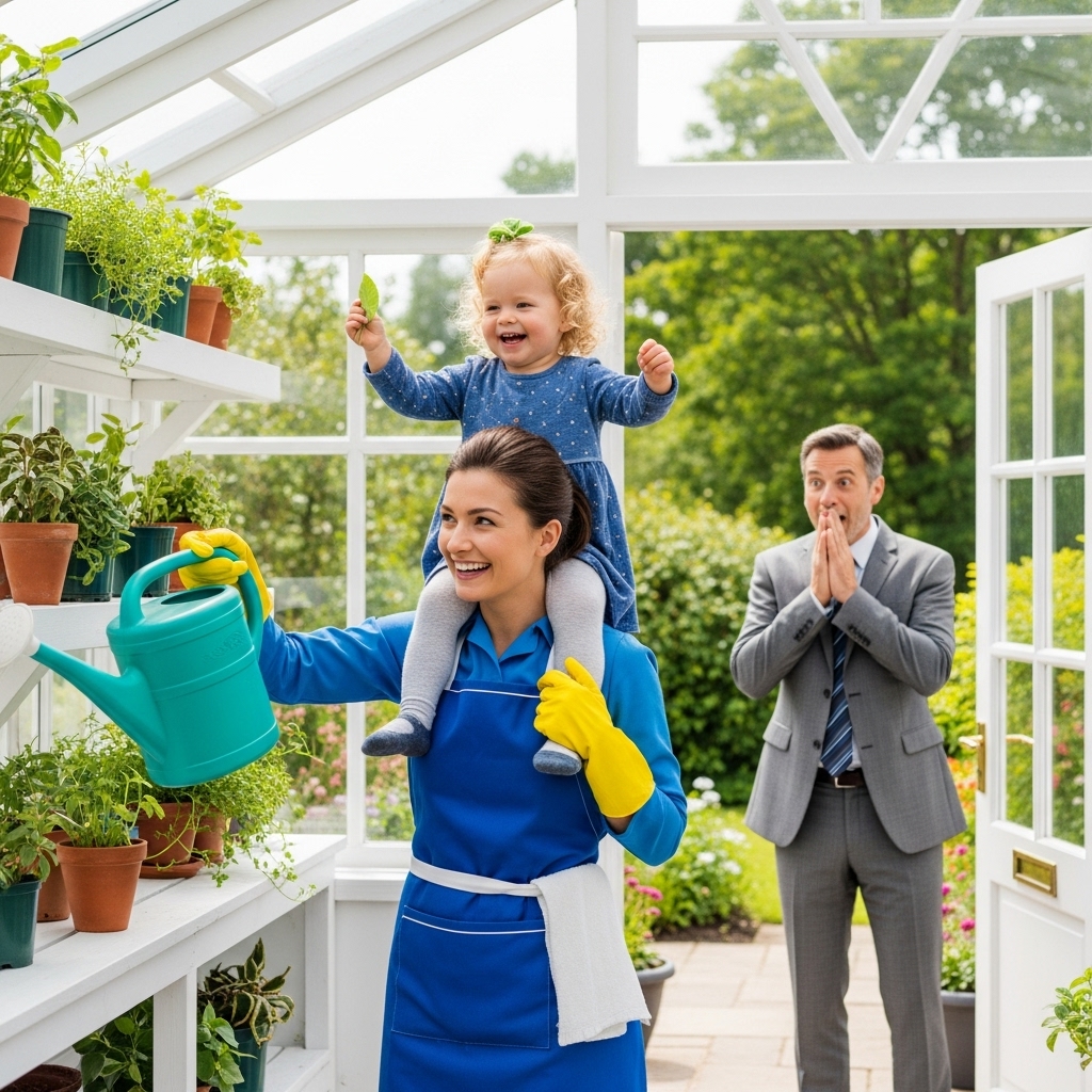Pasaron tres semanas. La mansión, antes oscura, ahora estaba llena de luz y juguetes. Alejandro llegó temprano, con una caja de regalo. Encontró a Elena y Mía en el invernadero, trasplantando flores, riendo.