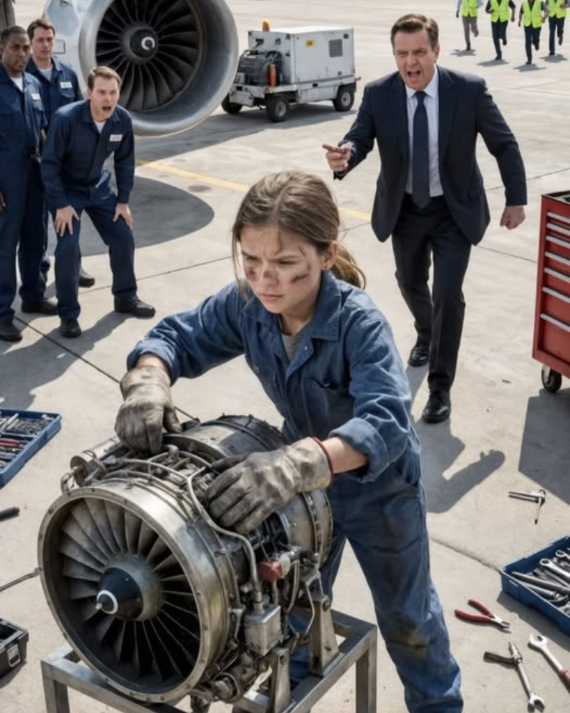 En la puerta del hangar apareció una joven extremadamente delgada, con un vestido roto y el cabello revuelto por el viento. Tenía los dedos manchados de grasa y los ojos fijos únicamente en el motor. Los ingenieros se rieron; el jefe, Sam, se burló de ella. Pero cuando la joven describió con precisión el silbido escuchado durante el aterrizaje y el comportamiento del motor, Andrew levantó la mano y dijo: