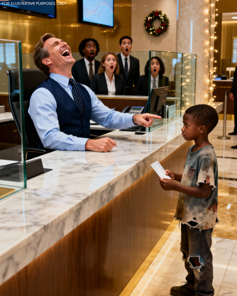 El gerente del banco, Tristan Vale, se detuvo a medio gesto, escrutando al niño como a un insecto raro atrapado bajo un cristal. Entonces estalló una carcajada, un sonido bajo y cruel que rebotó en las paredes de mármol.
