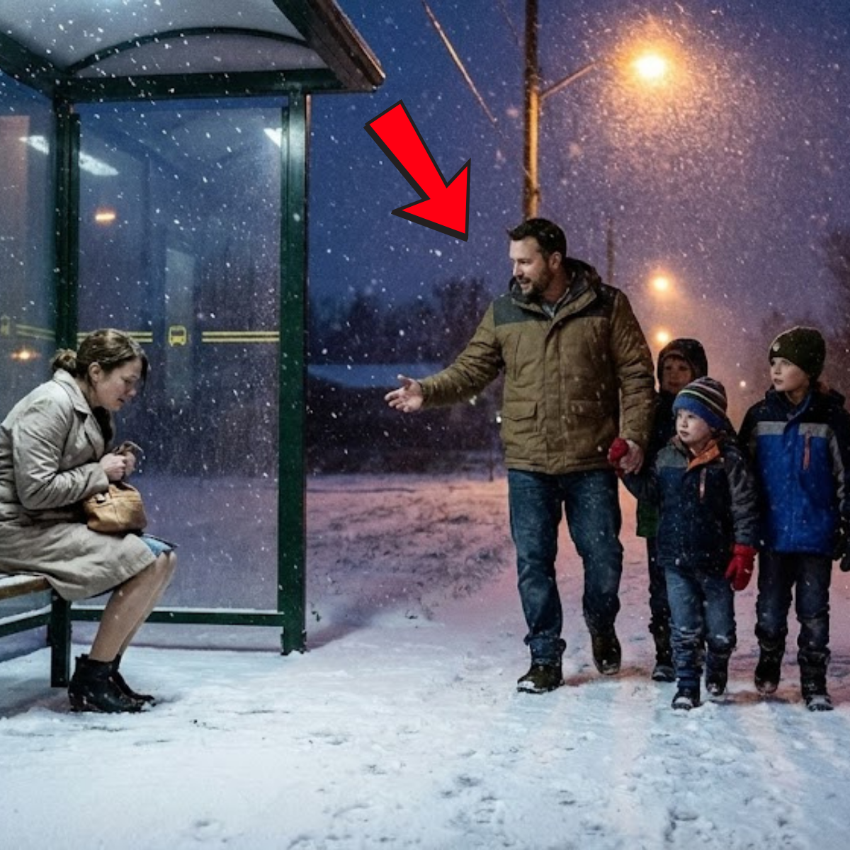 —Me llamo Jonathan Reed. Estos son mis hijos, Alex, Emily y Sam. Vivimos a unas dos manzanas de aquí. Me gustaría ofrecerte un lugar cálido donde pasar la noche, al menos hasta que decidas qué hacer. No es seguro que estés aquí fuera con este tiempo.