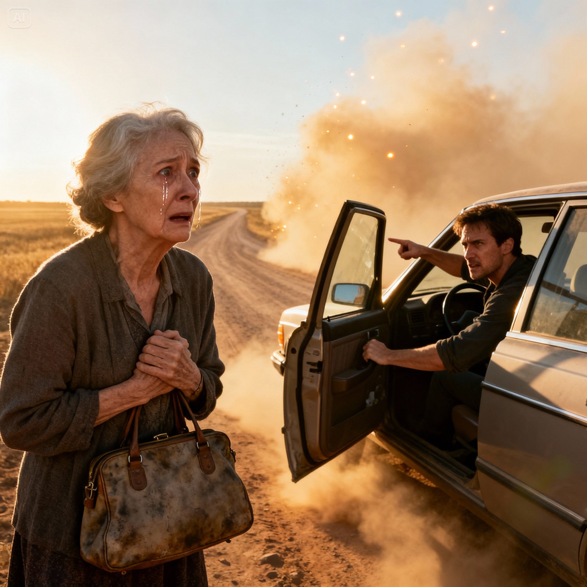Me bajé del coche porque no había otra opción. El polvo se pegó a mis zapatos. El viento era cortante. Apreté mi bolso contra el pecho, con el corazón latiendo fuerte—no por miedo, sino por incredulidad.