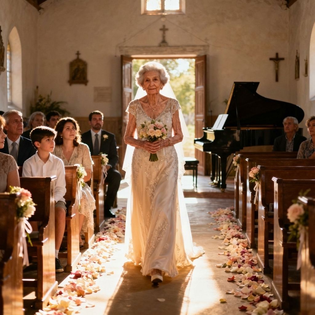 La iglesia estaba casi vacía: solo la familia. Sin adornos, salvo unas pocas flores. Un pianista tocaba suavemente, llenando el espacio con melodías calladas.