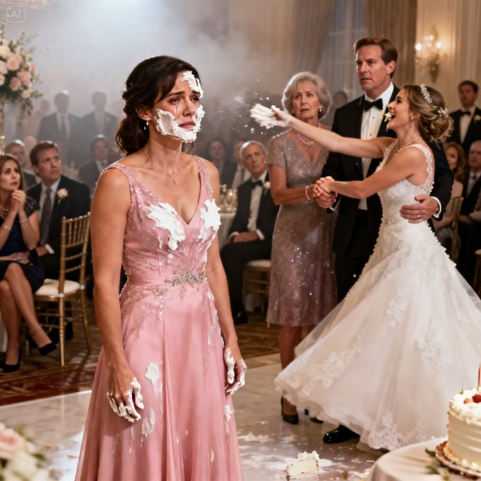 Mi hermana me arrojó el pastel de bodas y gritó: —¡Solo invité a la familia! ¡Tú no estabas invitada! Mis padres estallaron en carcajadas y todo el salón se unió a las risas. Conteniendo las lágrimas, abandoné el lugar. Pero unas horas después, cuando regresé, sus rostros estaban pálidos como la ceniza.