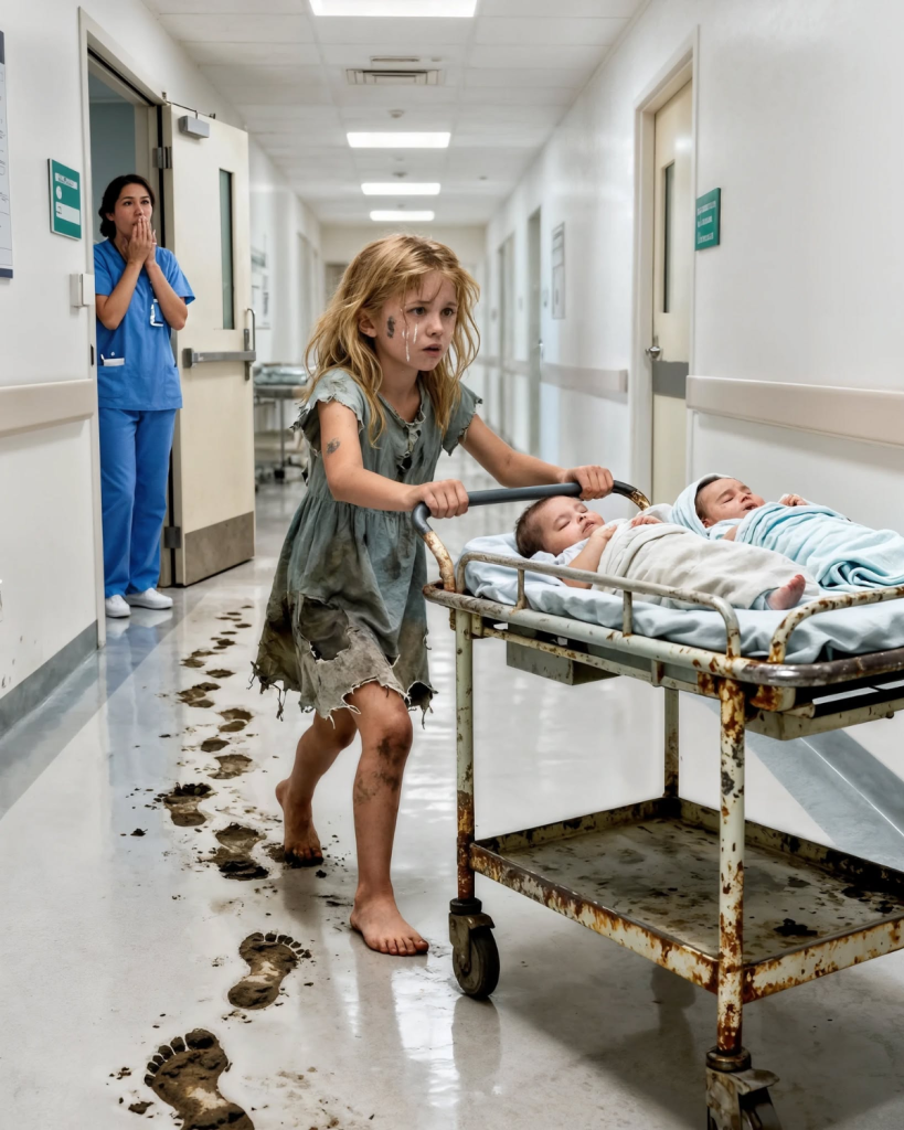 Una niña de 7 años empujó una carretilla durante kilómetros para salvar a sus hermanos gemelos recién nacidos, y lo que ocurrió después dejó a todo el hospital sin palabras…