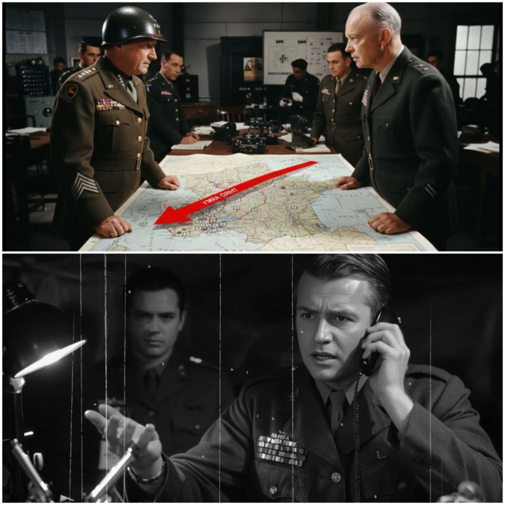 Patton grita: “¡Estoy a 60 millas del Rin! Denme el combustible destinado a Monty y puedo cruzar en tres días”.