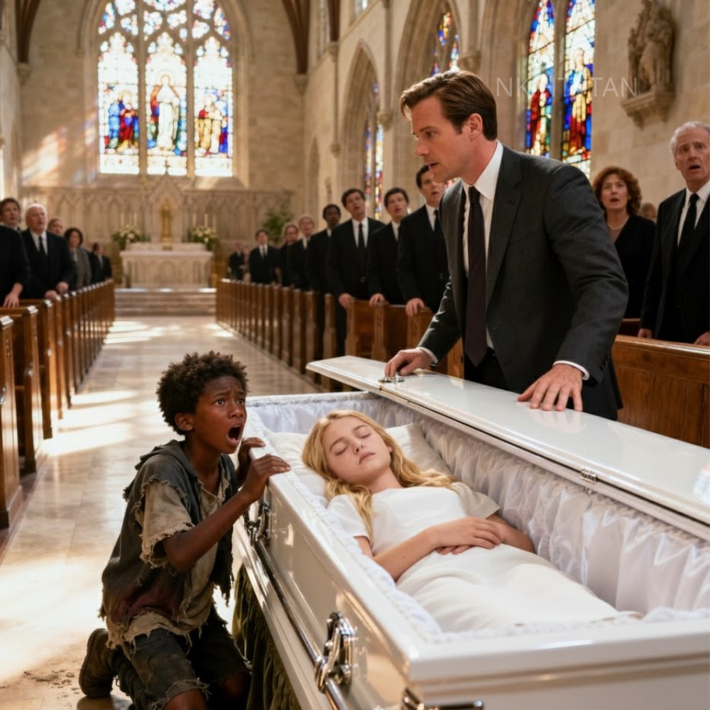 El funeral había sido silencioso: un multimillonario llorando la pérdida de su única hija. Pero ese silencio se hizo añicos cuando un chico negro flaco, con la ropa hecha jirones, se lanzó corriendo por el pasillo central, gritando con una voz temblorosa: