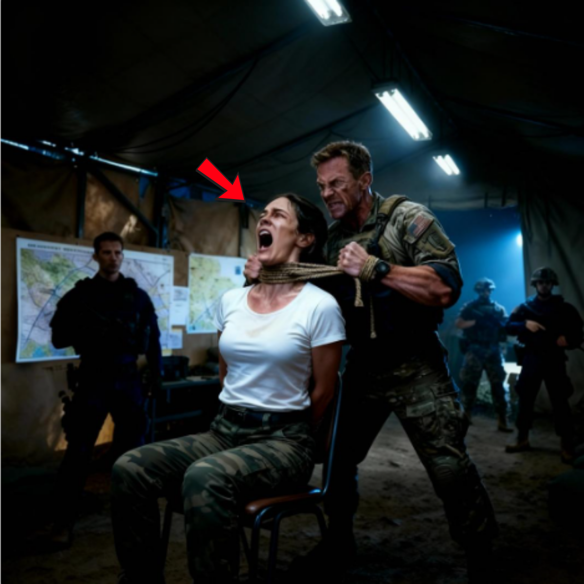 Ella estaba atada a una silla en medio de un centro de operaciones tácticas, rodeada por doce de los operadores más letales del ejército estadounidense. Su camisa blanca estaba empapada en sudor. Sus muñecas estaban en carne viva por las ataduras y el hombre que la estaba estrangulando estaba convencido de que era una infiltrada enemiga que, de alguna manera, había violado la base operativa más segura en Siria.