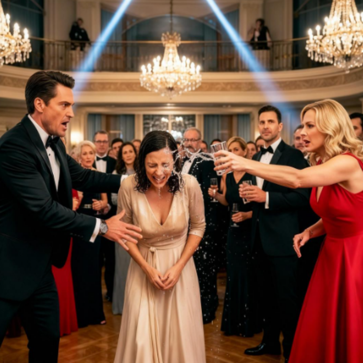 Sin decir una sola palabra, sacó un pañuelo blanco impecable del bolsillo de su chaqueta y comenzó a secar suavemente el agua de mi cara y cabello. Su toque era tierno y protector, y de alguna manera logró hacerme sentir menos expuesta a pesar de mi vestido empapado y la multitud que miraba.
