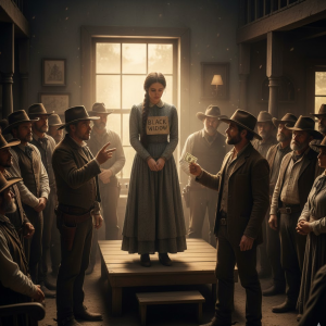 Elias Garrison había llegado al pueblo con la intención sencilla de comprar una montura nueva. No buscaba problemas. Pero cuando vio a la mujer en la plataforma, algo dentro de él se quebró.